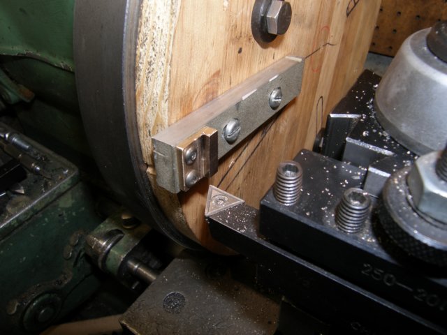 Now I'm cutting the bearing retainers. Although I will silver solder this to the bearing, I will use two screws to hold it in place. Here the screw holes are being used to mount the pare in a fixture.