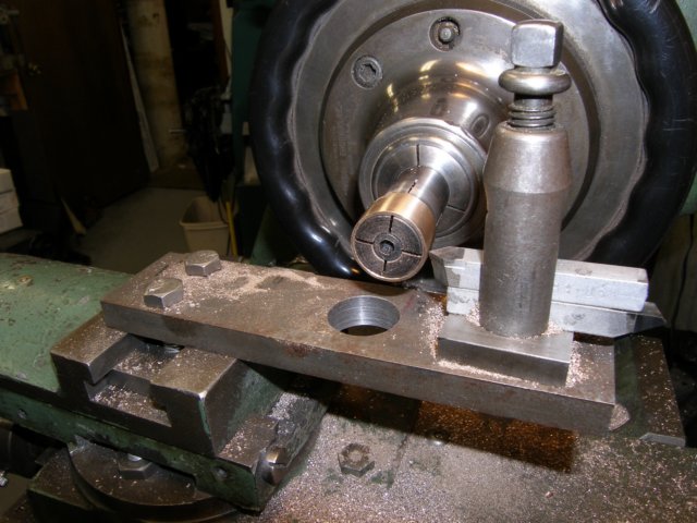 I made a radius tool holder extension to the compound that would give me a radius of about 4 inches. I rotated the tool by hand using the slightly loose compound as the pivet. Since the tool is mounted upside-down in the rear, the lathe must be run in reverse.